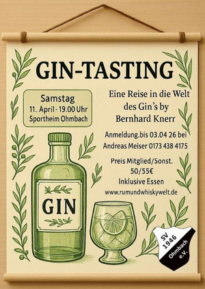 Der SVO lädt am 11. April 2026 um 19 Uhr zum Gin-Tasting im Sportheim ein.