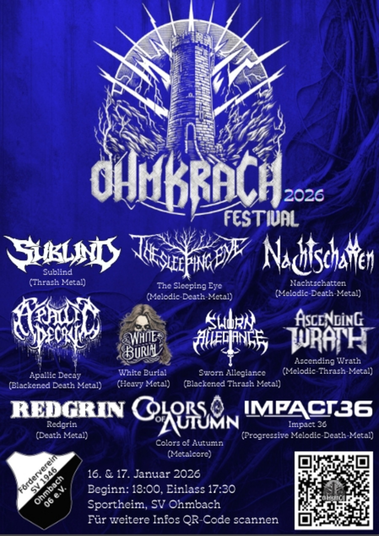 Wir bedanken uns bei allen Bands, Helfer*innen vor und auf der Bühne und vor allem bei den zahlreichen Besuchern des Ohmbacher Metal-Festivals!