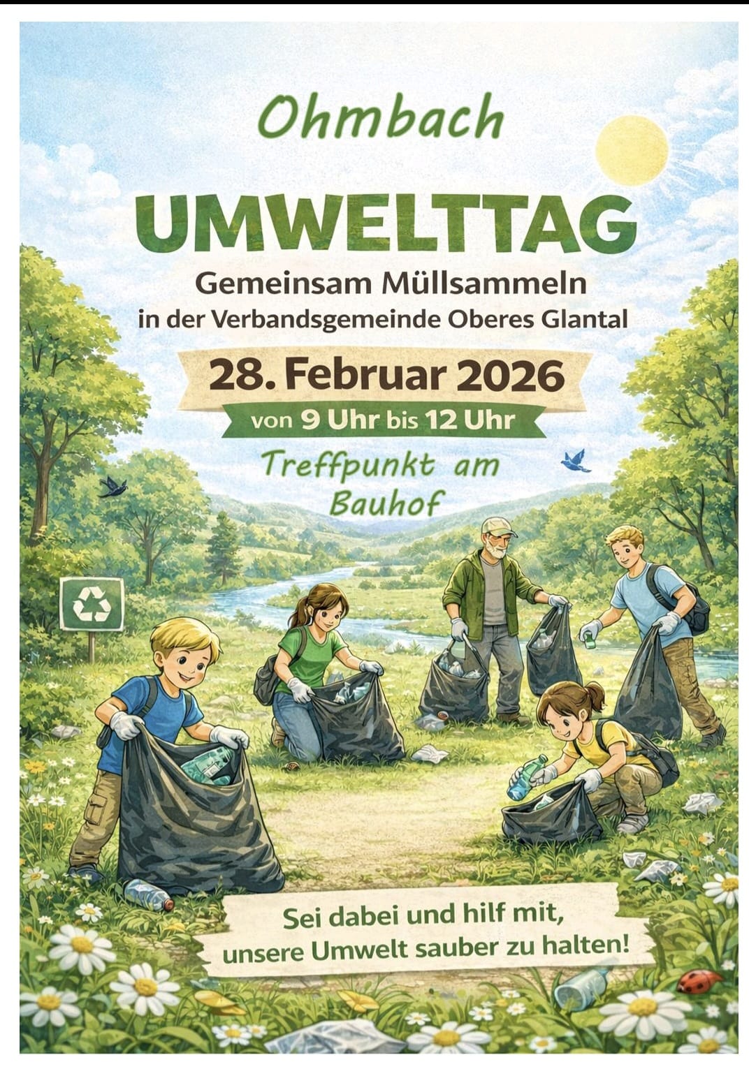 Am 28. Februar 2026 findet in der Verbandsgemeinde Oberes Glantal der Umwelttag statt. Auch die Ortsgemeinde Ohmbach beteiligt sich wieder daran.